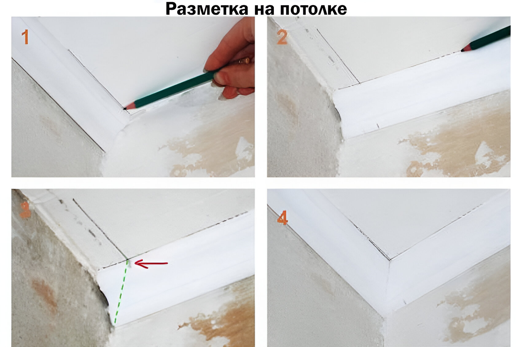 1 – Отмечаем точку пересечения на потолке